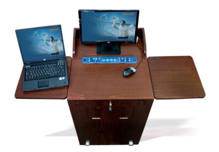 Tecom Electronics, una compañía privada fundada en 1996, emplea un enfoque dinámico y tecnológicamente avanzadas para ofrecer soluciones sencillas para la gestión de equipos audiovisuales en la formación y educación.TECPODIUM – El podio de disertación más avanzado y especial capaz de integrar todos los medios audiovisuales de uso en una conferencia.